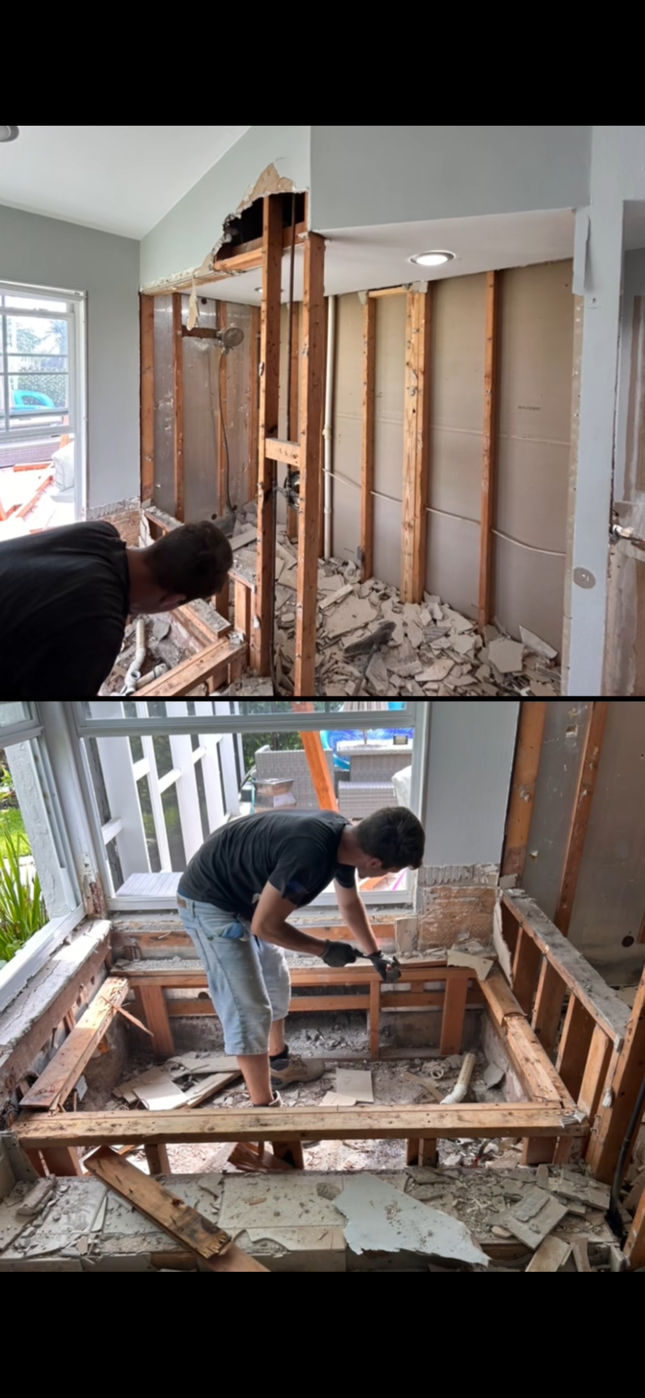 DURING: Mater Bath Remodel - Moving Plumbing for Freestanding Tub